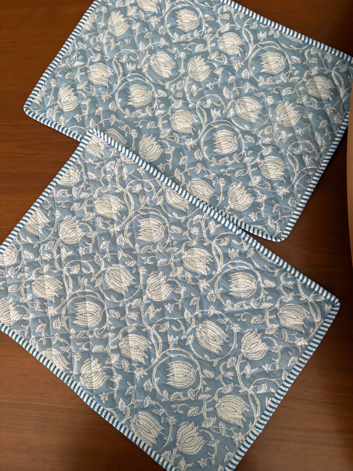 Introduce everyday elegance to your dining table with this set of quilted dining placemats. The elegant prints paired with classic stripes create a warm, inviting look while protecting your table from heat and spills. Each placemat is softly padded and beautifully stitched. Thoughtfully made for daily use, they are durable and easy to maintain.